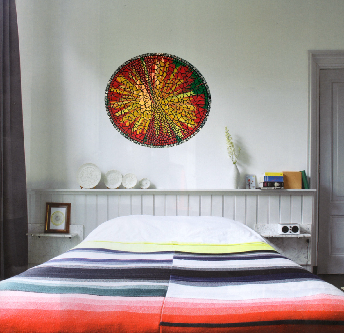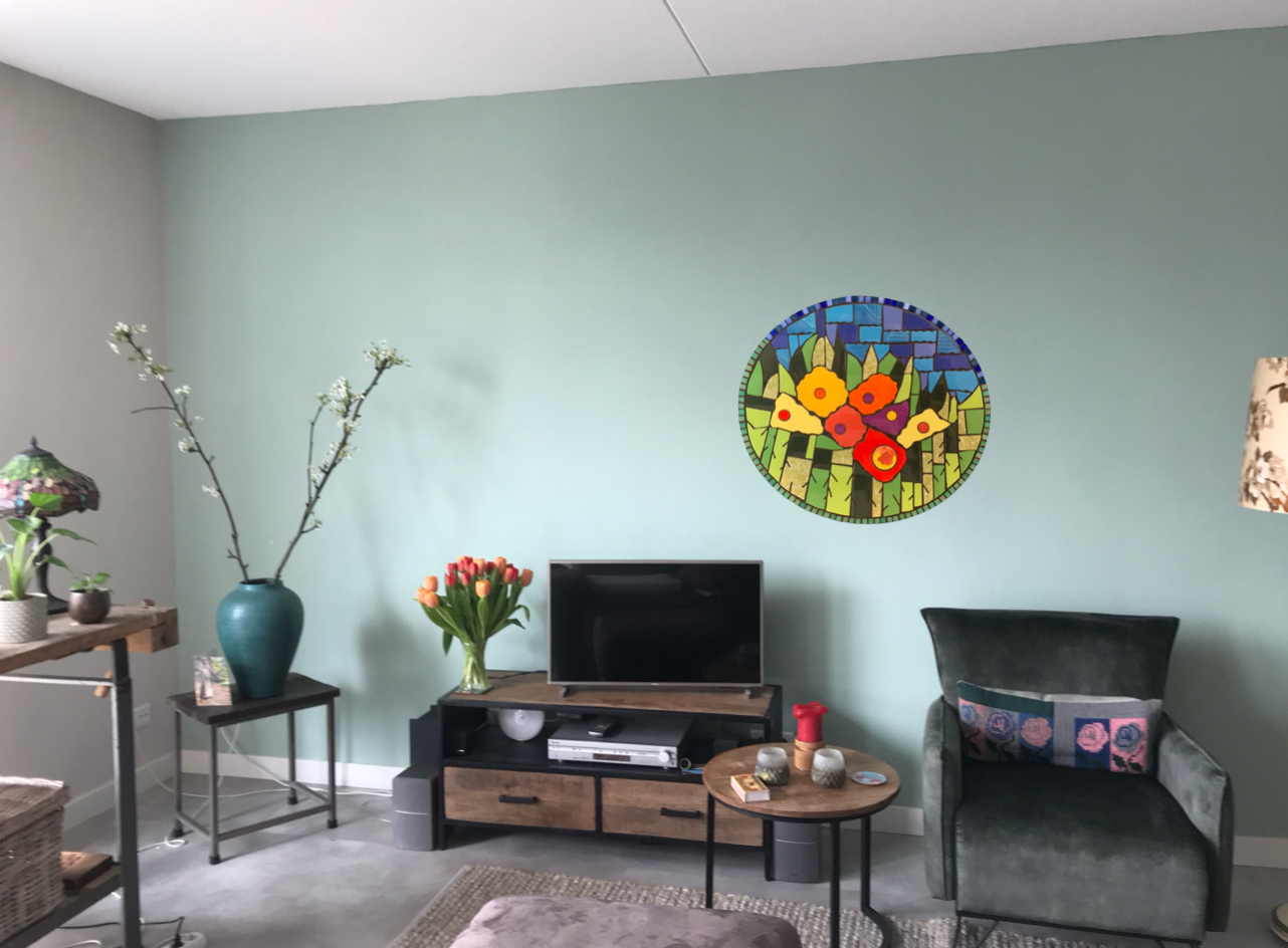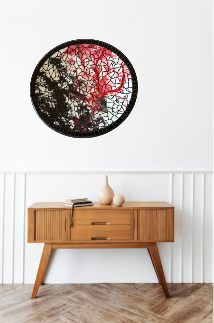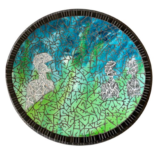 Explore my collection featuring mosaics crafted from upcycled satellite dishes. Each piece is unique, repurposing discarded materials into stunning artworks. Prices are available upon request, and you can click on the images to view them in more detail.